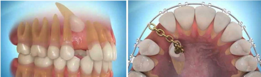 Pour ramener une dent incluse en bonne position, l’orthodontiste doit tout d’abord installer un appareil orthodontique pour faire de la place.